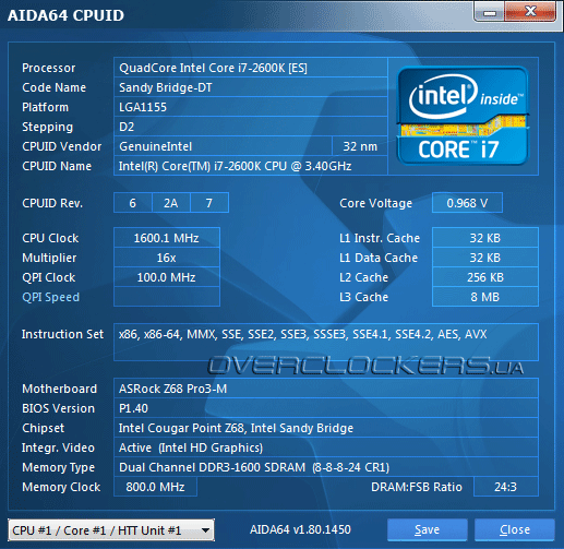 Максимальная частота, на которой наш Core i7 2600K сохранял стабильность при безопасном напряжении на плате ASRock Z68 Pro3-M, составила 4800 МГц. Ее нам удалось добиться после повышения в UEFI напряжения на CPU до 1,4 В и активации функции Loadline Calibration (Level 2).