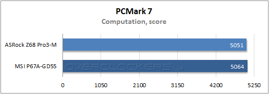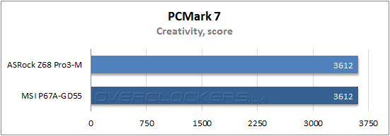 В приложении PCMark 7 материнская плата MSI P67A-GD 55 берет реванш — в четырех бенчмарках из пяти минимальное преимущество оказывается у нее, и только в тесте Creativity решения показали идентичный результат.