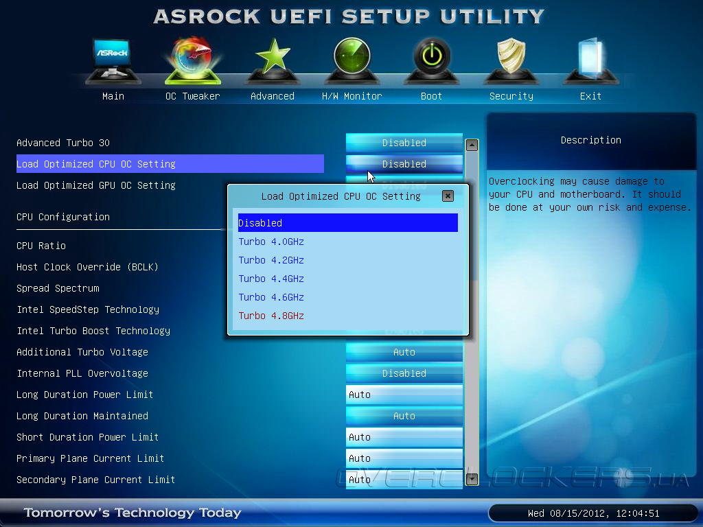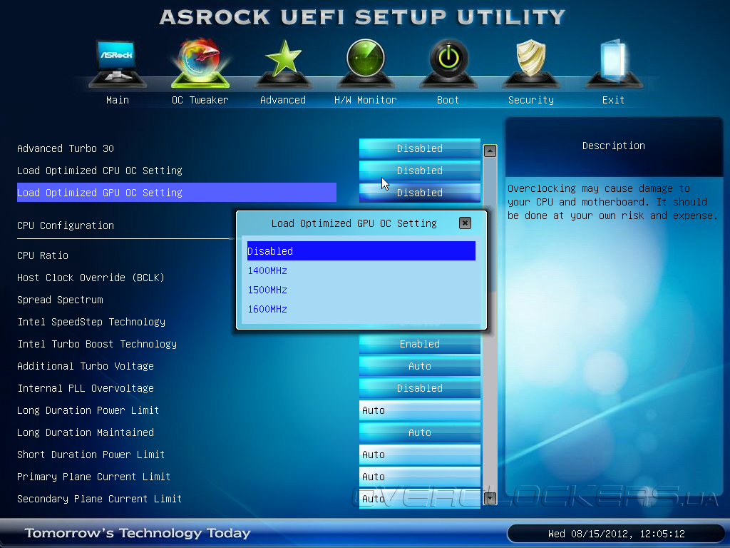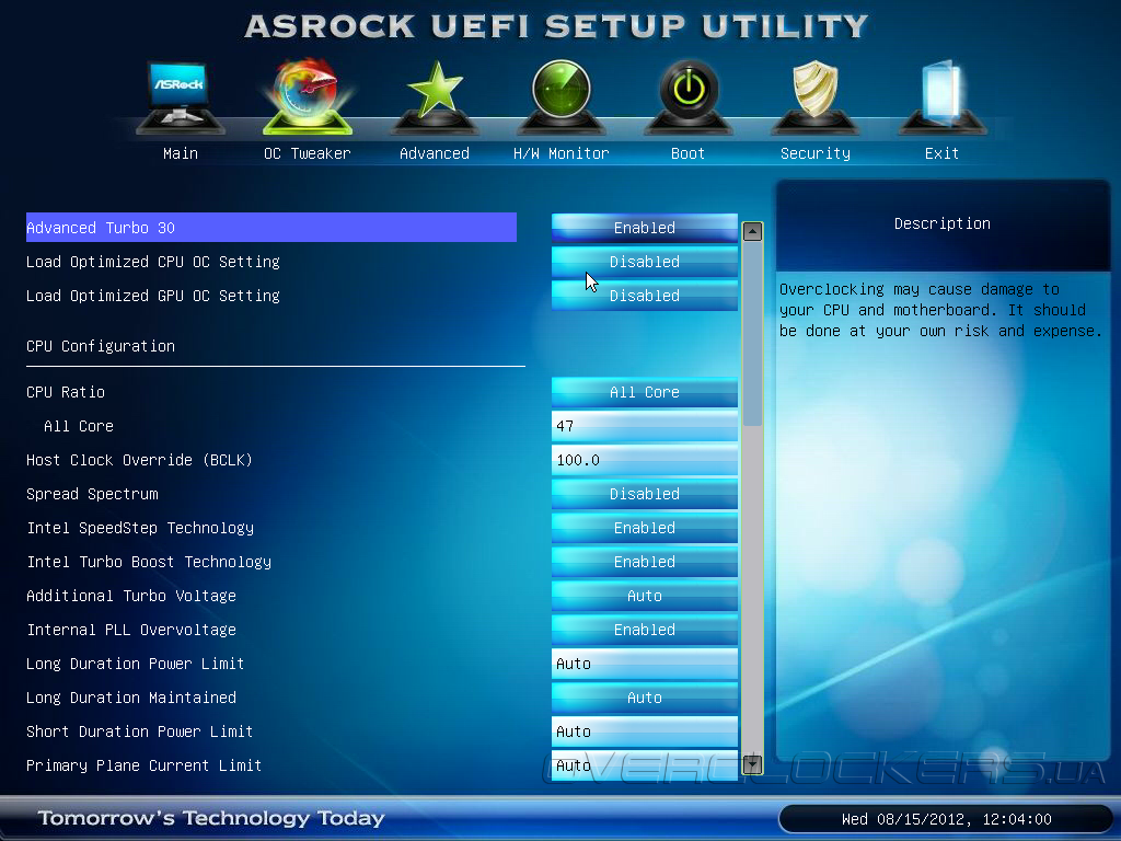 В целом возможности прошивки ASRock Z77 Extreme4 неплохие, для разгона системы доступных параметров будет более чем достаточно.