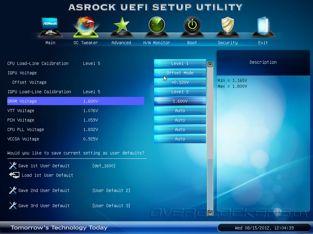 | DRAM Voltage | 1,165—1,8 | 0,005 |