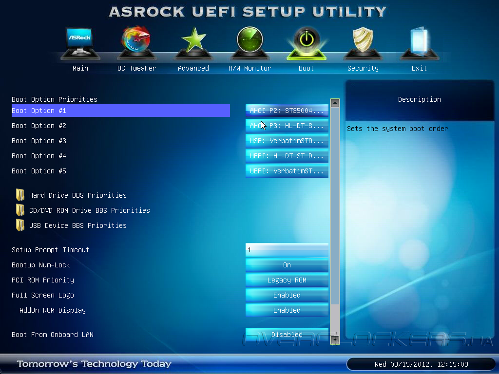 Ну что же, внешне плата Z77 Extreme4 выглядит отлично, а для своего размера «узкого» ATX расположение компонентов достаточно продумано. Не нравятся лишь фирменные защелки на слотах PCI-E x16, которые необходимо сдвигать для фиксирования карты. UEFI Setup
