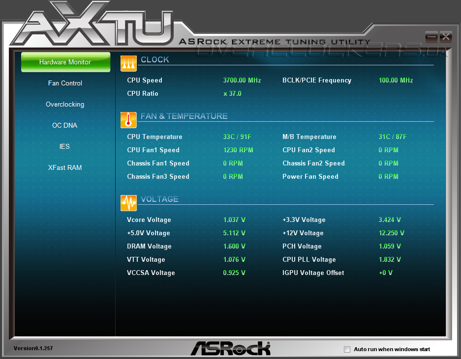 Самой интересной, на наш взгляд, является ASRock Extreme Tuning Utility. С ее помощью можно получить исчерпывающую информацию по частоте процессора, его множителе, BCLK, ключевым напряжениям, температуре и таходатчикам шести вентиляторов.