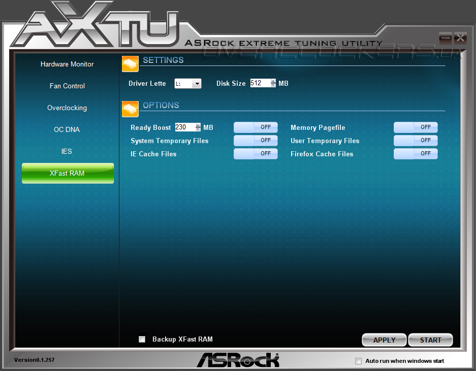 Ну а последняя вкладка XFast RAM отвечает за виртуальный диск в ОЗУ, который позволит ускорить работу с различными приложениями при достаточном количестве памяти.