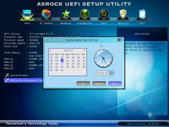 Интересно реализован процесс установки даты и времени. Во-первых, сделать это можно в любом окне прошивки, а во-вторых, сам процесс напоминает таковой для операционных систем Microsoft Windows.