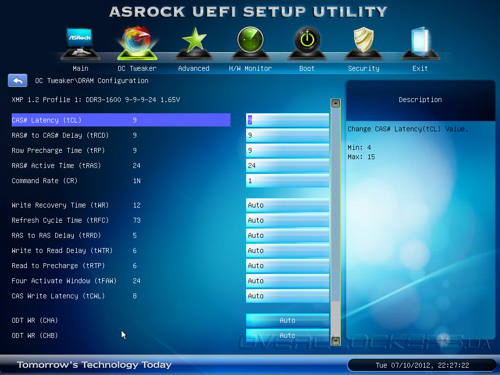 Еще, в меню OC Tweaker задается режим работы подсистемы ОЗУ. Обладатели модулей памяти, поддерживающих профили X.M.P., могут довериться автоматической настройке или указать параметры вручную.