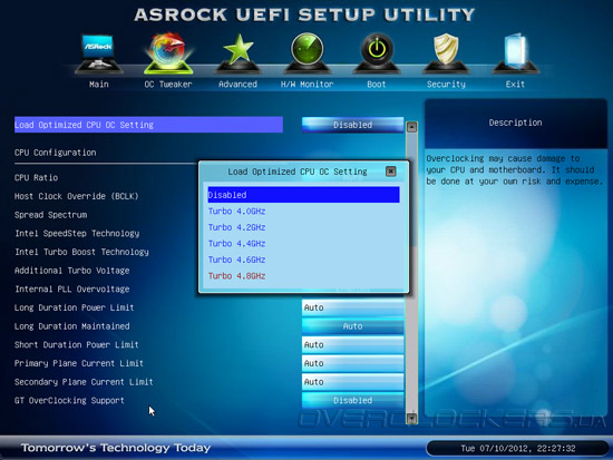 Таким образом, управляющий микрокод ASRock Z77 Extreme6 вполне соответствует, а порою даже превосходит, возможности меню настроек конкурирующих моделей. Нам откровенно понравился дружественный интерфейс и удобство работы с прошивкой. Тем не менее, нельзя не отметить небольшие верхние пределы увеличения напряжения на центральном процессоре, что может стать препятствием при достижении максимального разгона при использовании мощных систем охлаждения.