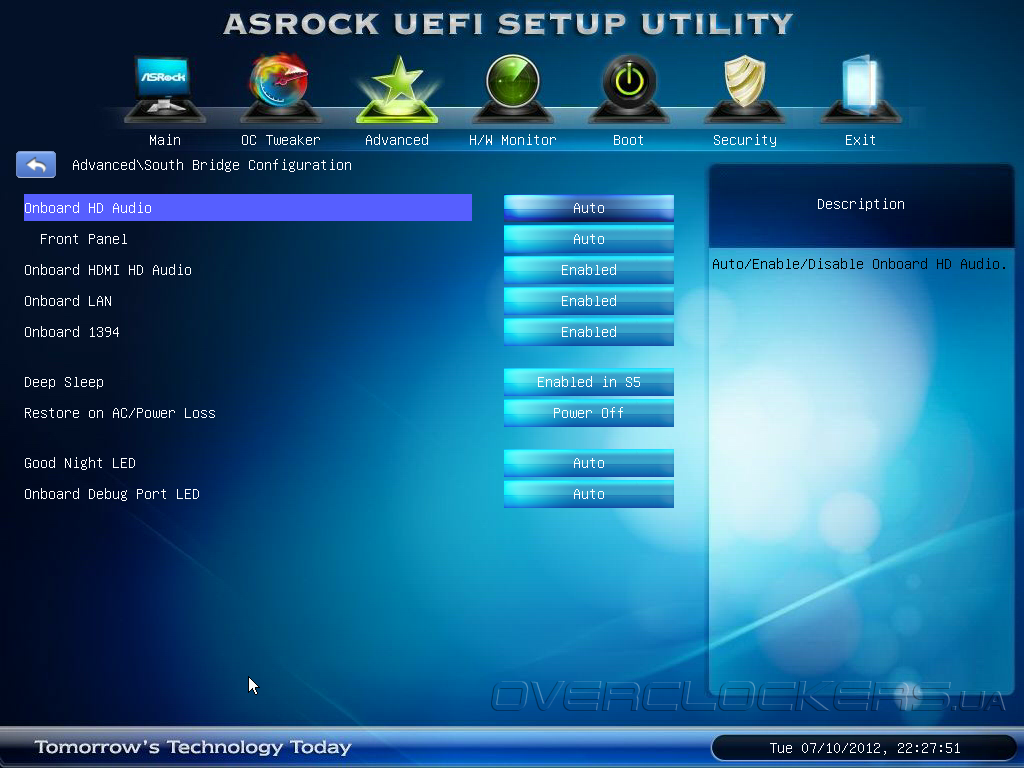 Управление дополнительными контроллерами сосредоточено во вкладке South Bridge Configuration.