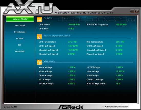 В прошлом, когда компания ASRock выпускала преимущественно бюджетные модели, программное обеспечение этого вендора имело невысокие удобство и функциональность, а потому не пользовались особой популярностью у покупателей системных плат. К счастью, те времена остались далеко позади, и Z77 Extreme6 комплектуется всеми необходимым драйверами, а также неплохим набором полезных программ. Особого внимания, в первую очередь, заслуживает утилита AXTU — ASRock Extreme Tuning Utility, предназначенная для управления параметрами быстродействия и мониторинга состояния системной платы.