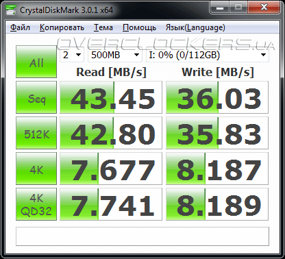 Несмотря на то, что производитель заявляет о пятикратном приросте скорости, мы решили самостоятельно убедиться в эффективности работы XFast USB. Для этих целей был задействован твердотельный накопитель Kingston SSDNow V+200 120GB, подключенный к чипсетным портам USB 2.0 при помощи внешнего «кармана» Techsolo TMR-200S. Увы, эта модель не поддерживает третью ревизию универсальной последовательной шины, тем не менее, именно её пришлось использовать при тестировании в синтетическом бенчмарке CrystalDiskMark 3.0.1.