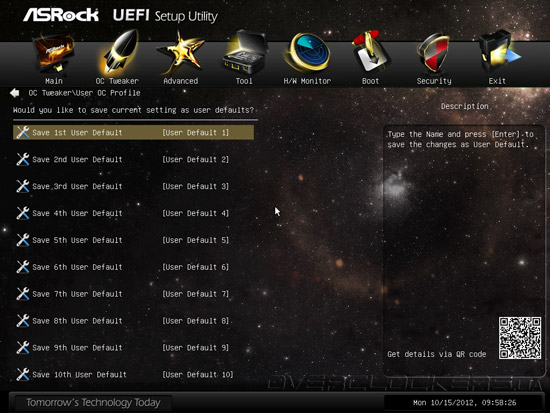 Также, UEFI героини сегодняшнего обзора позволяет сохранять до десяти пользовательских профилей настроек во вкладке User OC Profile.