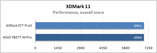 В 3DMark 11 обе платы показывают практически одинаковый уровень производительности.