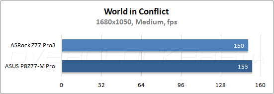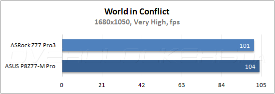 Если же смотреть по результатам реальных игровых приложений, то опять же плата ASRock медленнее оппонентки, но не настолько критично, чтобы делать окончательные выводы. Наша P8Z77-M Pro очень производительная в плане графической части и с ней тягаться конкурентам очень тяжело.
