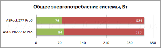 Плата ASRock более экономичная во время простоя системы, чем продукт ASUS, но потребляет на один ватт больше, если запускается ресурсоемкое приложение.