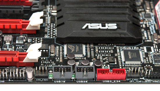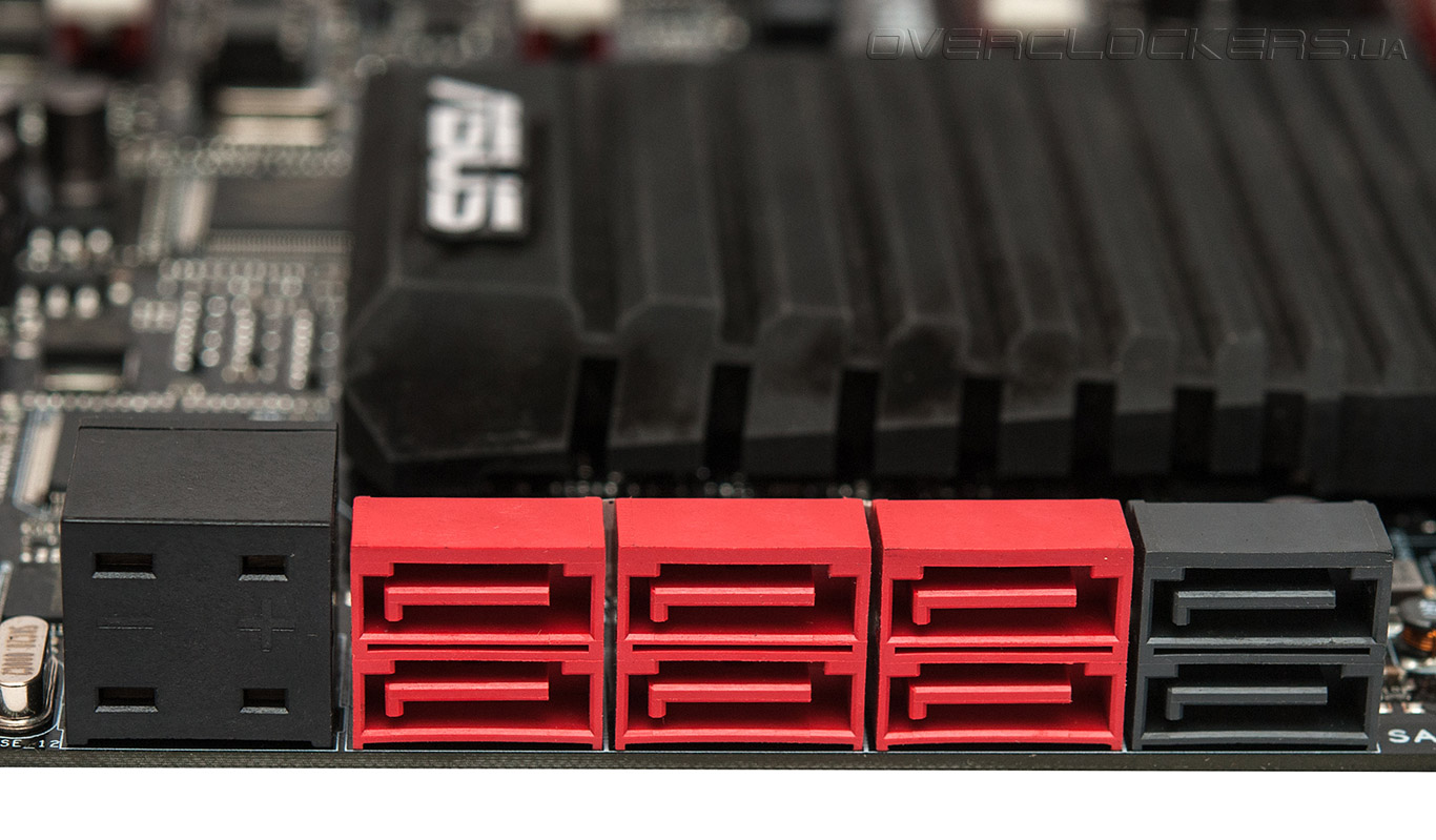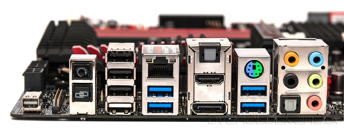 Четыре порта третьей версии работают от двух контроллеров ASMedia ASM1042, остальные — нативные. На заднюю панель выведено по четыре порта каждой версии, причём один USB 2.0 зарезервирован для ROG Connect.