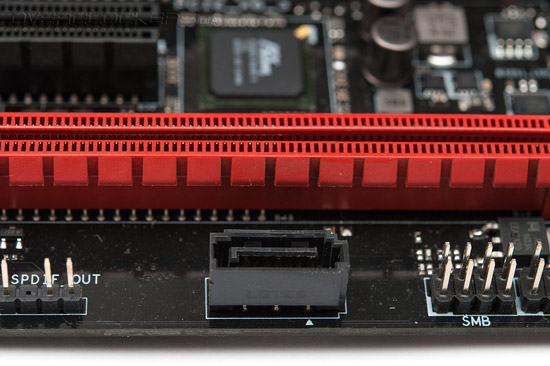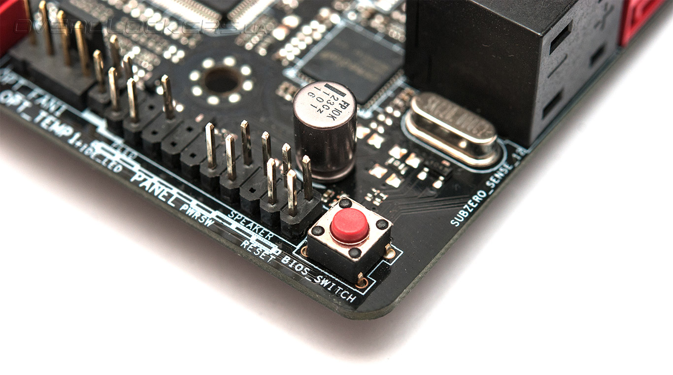 Рядом с разъёмами SATA находятся два гнезда для подключения термопар К-типа. Эта функция называется Subzero Sense и обеспечивает точный мониторинг отрицательных температур при разгоне с применением экстремального охлаждения. Subzero Sense также может сэкономить финансы начинающим «азотчикам», так как высокоточные термометры являются весьма недешёвым удовольствием.