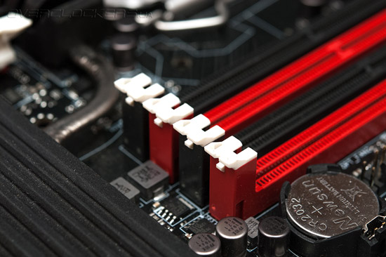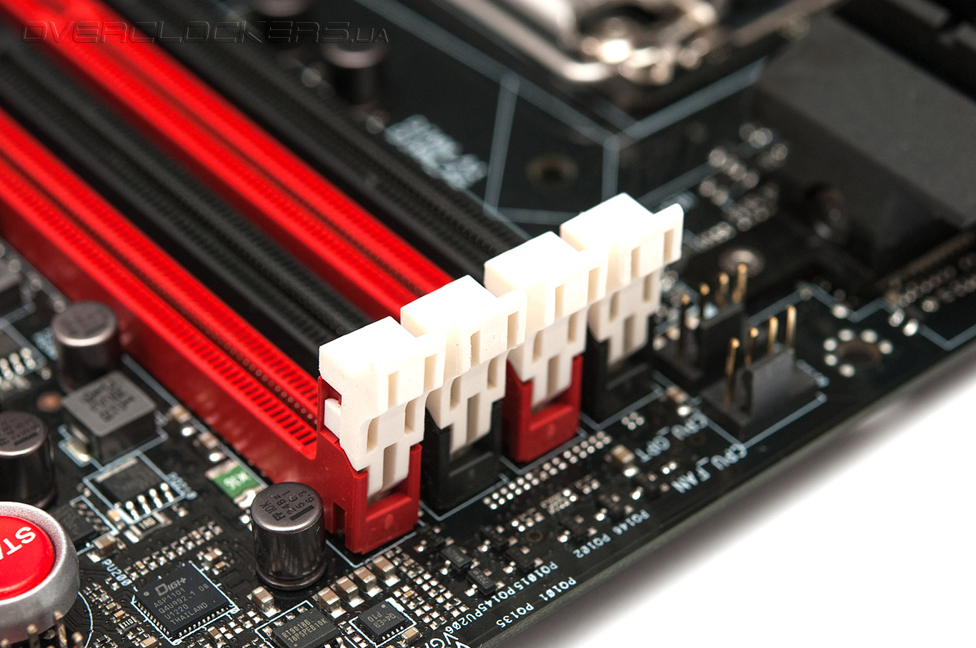 Фирменными защелками оснащены и слоты DIMM, чтобы установленный видеоадаптер не мешал демонтажу оперативной памяти.
