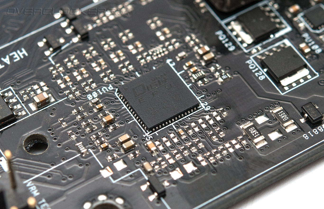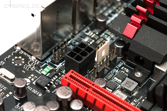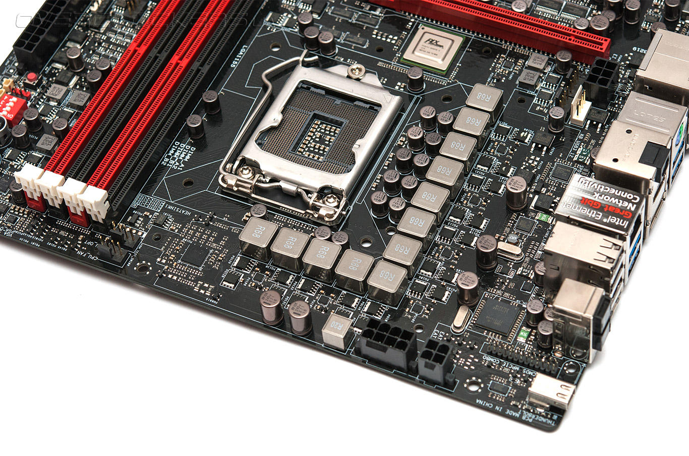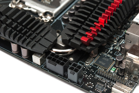 Процессор запитан по 12-фазной схеме (реальных каналов шесть), где восемь фаз предназначено для самих ядер, а четыре — встроенному GPU. Еще два канала, выполненные на отдельном контроллере, используется для модулей памяти. Во всех цепях платы используются только высококачественные твердотельные конденсаторы, катушки закрытого типа и дроссели с монолитным сердечником.