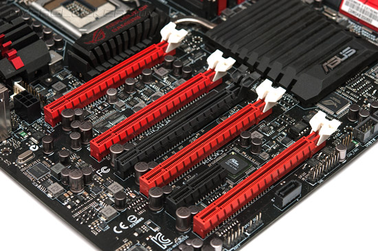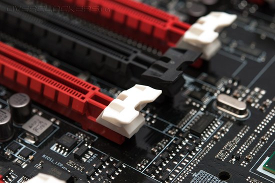 Из плюсов Maximus V Extreme можно выделить удобные фирменные защёлки на разъемах PCI-E x16, позволяющие без затруднений вставлять и вынимать видеокарты и различные платы.