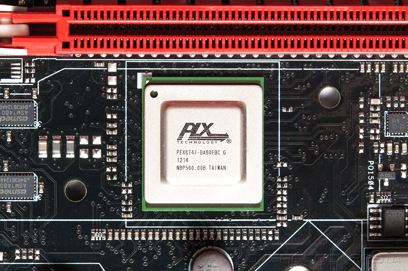 Такое большое количество линий PCI-E обеспечивается скоростным чипом-коммутатором PLX PEX 8747.