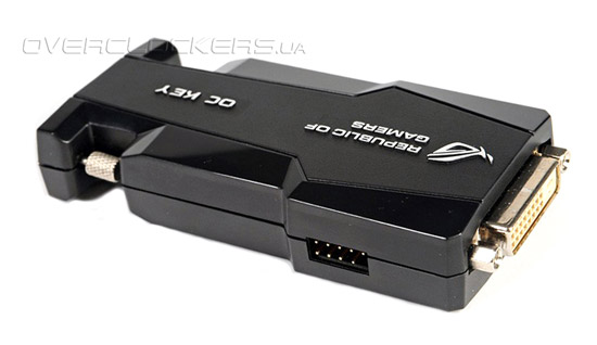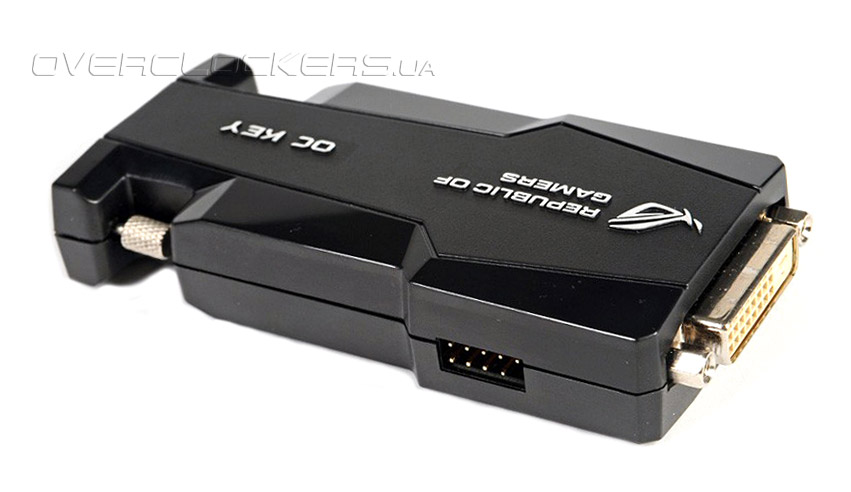 При удержании кнопки ROG Conneсt, расположенной на задней панели, в течении трёх секунд, на мониторе появляется окно OSD Monitor c настройками. Управление осуществляется с помощью клавиатуры. OC Key поддерживает только подключение DVI-D Single Link, поэтому максимальное доступное разрешение составляет 1920×1200, что будет критично для владельцев мониторов с диагональю 26—30 дюймов и с разрешениями 2560х1440 точек и более.