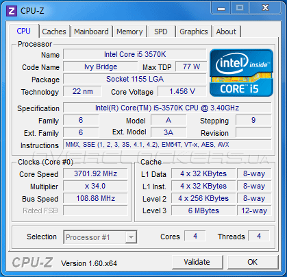 - процессор: Core i5-3570K (3,4 ГГц, 6 Мбайт кэш L3);
