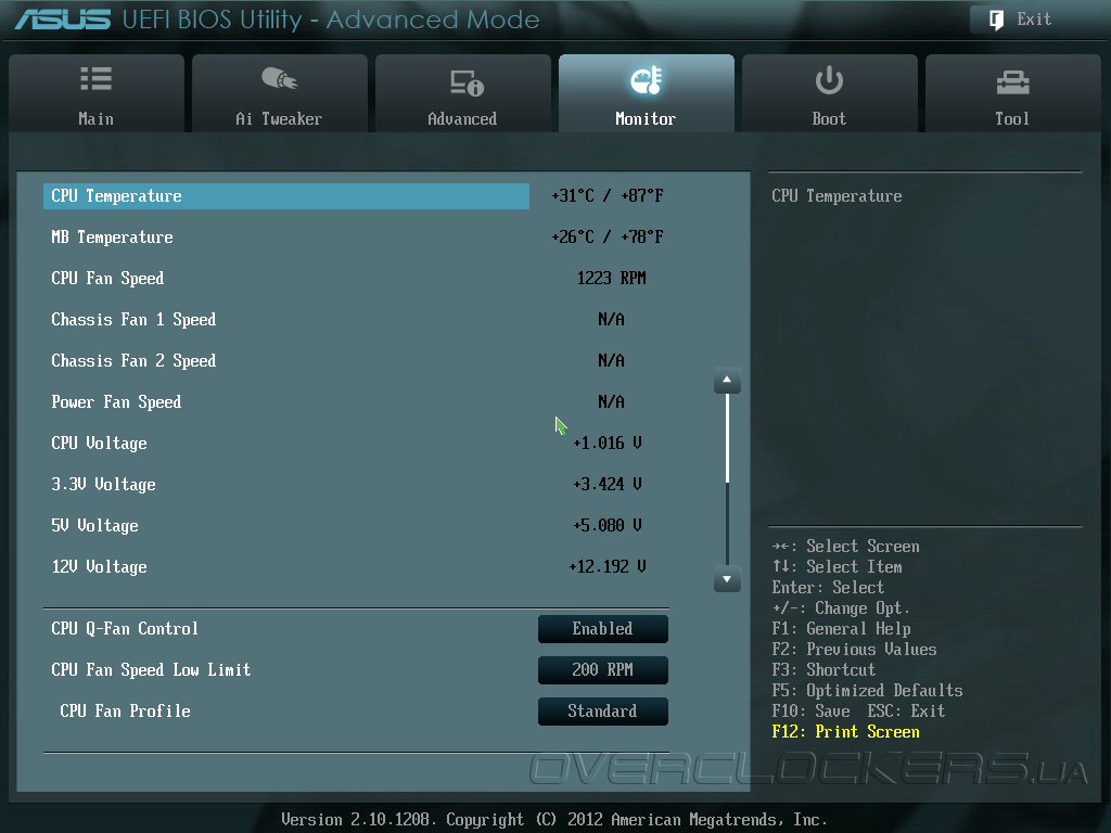 Вместо привычного BIOS у современных материнских плат используется Unified Extensible Firmware Interface (UEFI) и P8Z77-V LX не стала исключением. В качестве отправной точки при входе в прошивку программисты ASUS остановились на упрощенном режиме EZ Mode, где пользователь может получить краткую информацию о системе, проконтролировать ключевые напряжения, температуру и частоту вращения вентиляторов, настроить план энергопотребления и выбрать загрузочный накопитель.