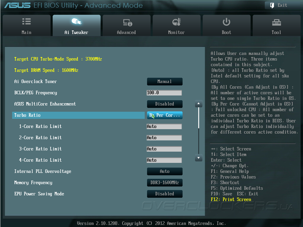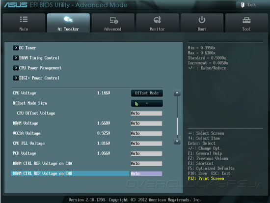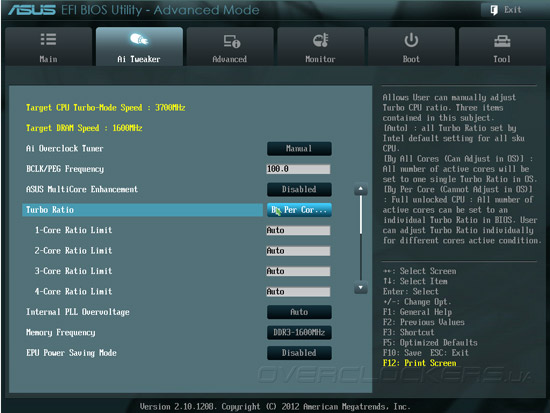 Подавляющее большинство опций, связанных с разгоном P8Z77-V Pro/Thunderbolt, находятся в разделе прошивки под названием Ai Tweaker. Пользователю доступны управление частотой BCLK, множителями вычислительных ядер и всеми возможными настройками подсистемы ОЗУ.