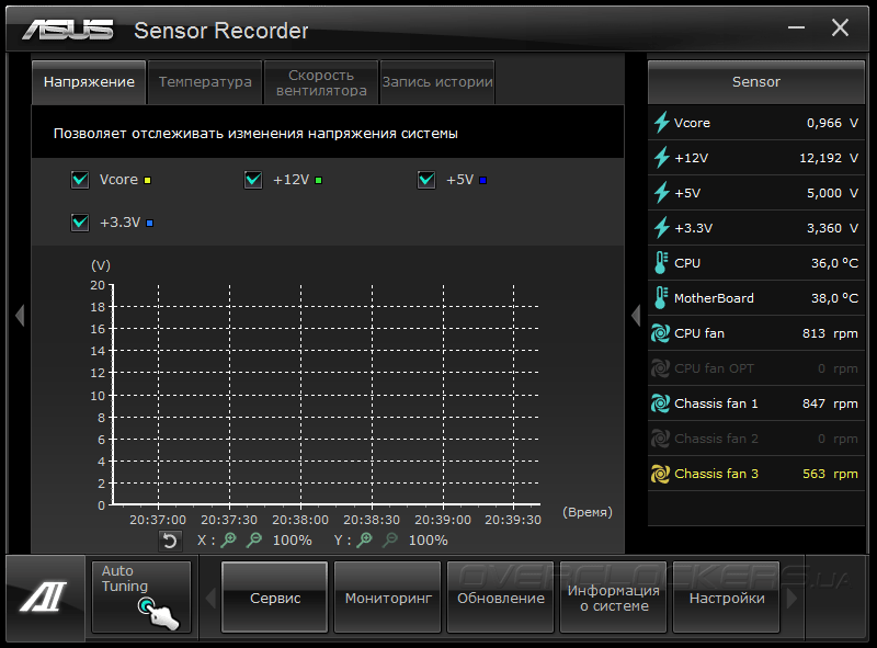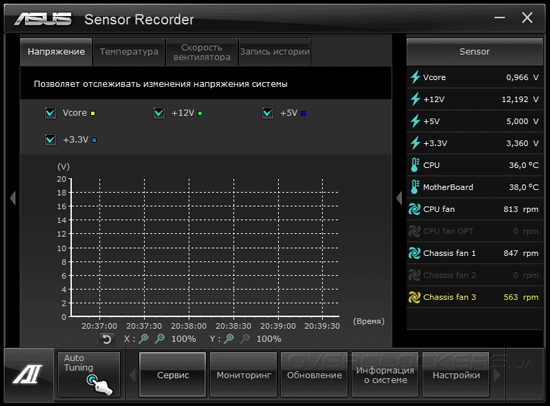 Этот модуль также позволяет вести статистику показаний датчиков аппаратного мониторинга с возможностью построения графиков в режиме реального времени.