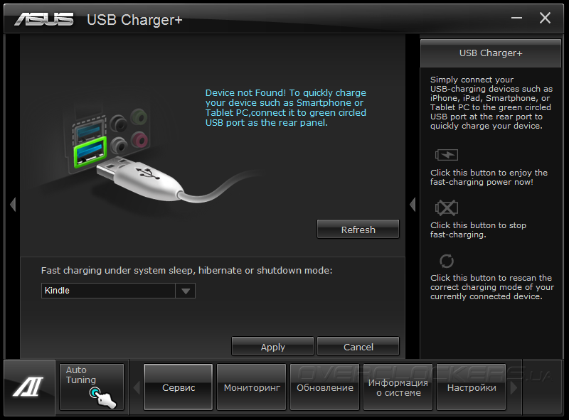 Функция USB Charger+ оптимизирует процесс заряда мобильных устройств, причем, для самых распространенных гаджетов имеются профили, обеспечивающие максимально быстрый процесс восстановления заряда батареи.
