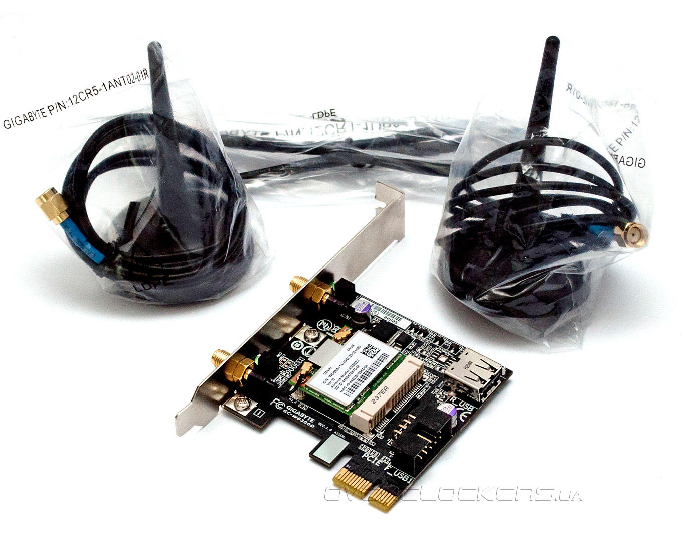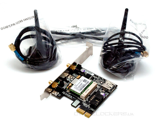 Материнская плата Gigabyte G1.Sniper 3 комплектуется интерфейсной платой GC-WB300D (Ahteros AR5B22), которая обеспечивает поддержку беспроводных сетевых интерфейсов Wi-Fi и Bluetooth. Вместе с адаптером поставляются две всенаправленные антенны Wi-Fi, основания которых снабженные магнитными «липучками» для фиксации на металлических поверхностях.