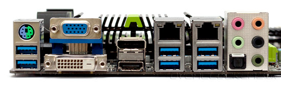 Реализация USB участницы сегодняшнего тестирования выполнена совершенно нестандартно. Напомним, что «набор» системной логики Intel Z77 Express поддерживает подключение четырех устройств с интерфейсом USB 3.0, а еще десять портов могут работать в режиме USB 2.0. Несмотря на это, конструкторы Gigabyte G1.Sniper 3 распределили имеющийся ресурс по-особенному. Пара чипсетных разъемов USB 3.0 выведены на заднюю панель системной платы, а к двум оставшимся каналам подключены пара USB-хабов VIA VL810, каждый из них обеспечивает работу четырех портов USB 3.0. Четыре из восьми разъемов можно встретить на задней панели материнской платы, а еще четыре устройства можно подключить к внутренним разъемам, распаянным на РСВ. Кроме того, Gigabyte G1.Sniper 3 располагает четырьмя внутренними портами USB 2.0. И, наконец, благодаря наличию дополнительного контроллера VIA VT6308 есть два внутренних порта FireWire.