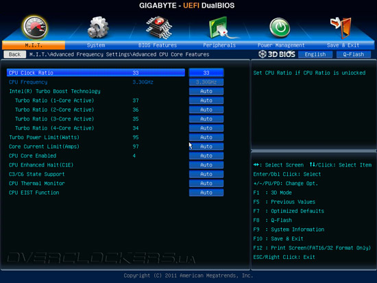 Как и подобает флагманской модели, дизайн материнской платы Gigabyte G1.Sniper 3 не оставил нас равнодушными. Высокое качество изготовления и обилие уникальных конструкторских решений оставили по себе самые приятные впечатления. Среди таких решений можно отметить возможность построения конфигураций из четырех графических ускорителей, использование продвинутого аудиокодека от Creative, наличие двух гигабитных сетевых контроллеров, а также рекордное количество портов USB 3.0. Зная пристрастие инженеров Gigabyte к сооружению эффектных, но не всегда эффективных систем охлаждения мы удивились, обнаружив у G1.Sniper 3 очень продуманною, лишенную всяческих бесполезных украшений, конструкцию. А еще, учитывая мощную силовую подсистему, плата имеет все шансы продемонстрировать впечатляющие результаты разгона. Это предположение мы обязательно проверим на практике, а пока рассмотрим прошивку участницы сегодняшнего тестирования.