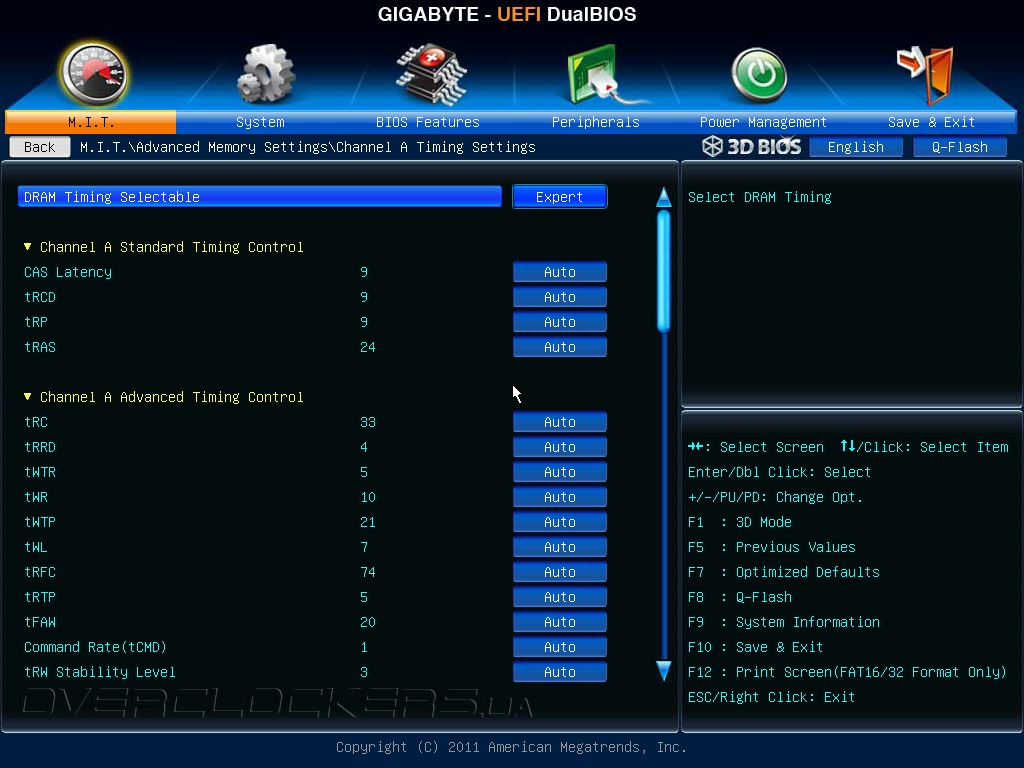 Прошивка материнской платы Gigabyte G1.Sniper 3 позволяет управлять всеми основными и множеством дополнительных таймингов модулей ОЗУ.