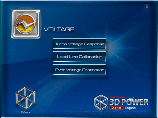 Вторая полезная программа — 3D Power, которая обеспечивает тонкие настройки цифрового модуля VRM. Опции, касающиеся функционирования Loadline calibration, защиты от перенапряжения и скорости переключения между уровнями напряжения (P-states) центрального процессора, сосредоточены в разделе Voltage.