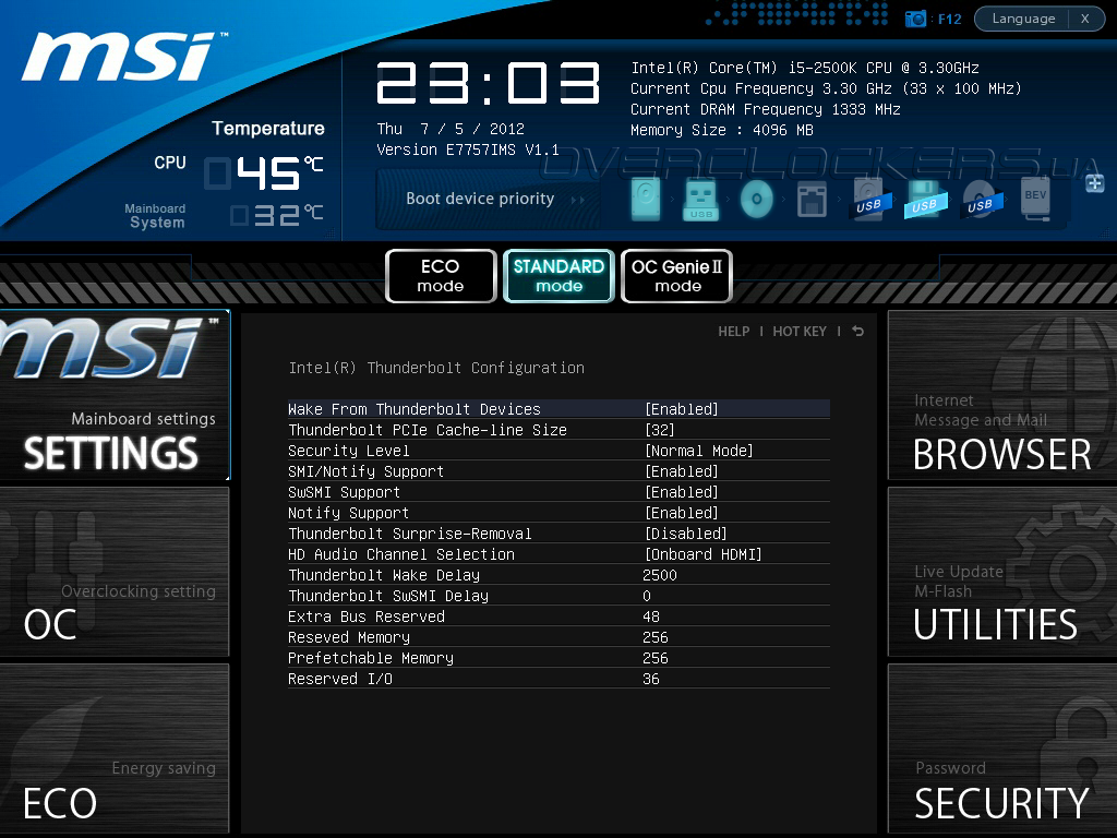 В то же время, по обилию сопроводительной документации MSI Z77A-GD80 даст фору любым конкурентам. Большой объем информации вынудили поставщика вынести описание программного обеспечения в отдельное руководство. Обращаем ваше внимание на инструкцию по работе с интерфейсом Thunderbolt, которая пригодится обладателям соответствующей периферии.