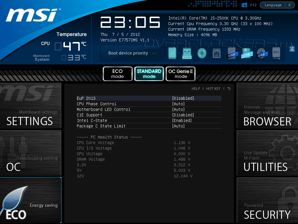 Управление технологиями энергосбережения и контроль напряжений в меню настройки Z77A-GD80 вынесены в отдельный раздел ЕСО.