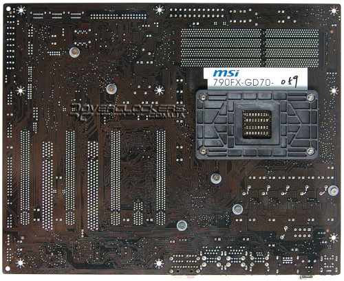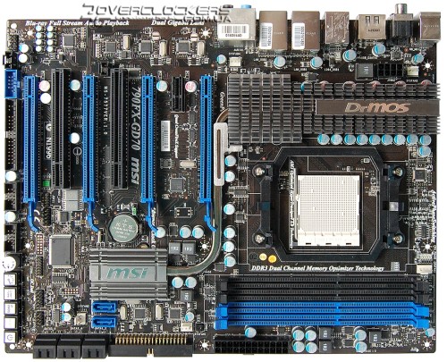 MSI 790FX-GD70 размером 304x245 выполнена на текстолите коричневого цвета и, как и все последние серии материнских плат тайваньской компании, имеет однотонный дизайн всех разъемов и системы охлаждения. С одной стороны — это хорошо, так как «новогодние елки» уже приелись, но с другой стороны не все контакты у некоторых разъемов подписаны, что усложнит сборку системы без инструкции.