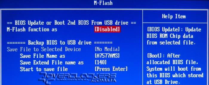 В разделе M-Flash можно обновить BIOS. Обновление и бэкап файла производится с (на) USB-носитель. В случае повреждения BIOS возможна резервная загрузка с такого USB-накопителя.