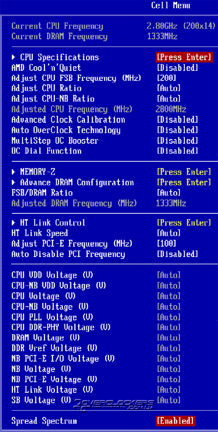 Все функции разгона сосредоточены в Cell Menu.
