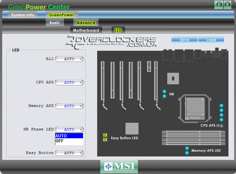Меню Advanced дает пользователю все возможности по регулированию энергосберегающих технологий. Тут можно и напряжения изменить вручную и регулировать количество активных фаз, и задействовать лишь определенные светодиоды-индикаторы. Все настройки можно сохранить в отдельном профиле, который можно будет использовать в случае необходимости.