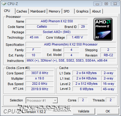 Phenom II X2 550 BE был работоспособен вплоть до 3838 МГц. Результат неплохой, но, в целом, от материнской платы тут разгон уже почти не зависит, благодаря свободному множителю у процессоров серии Black Edition.