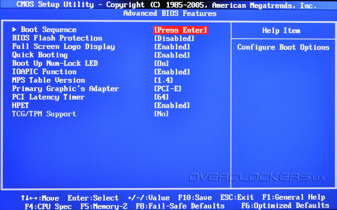 Следующий раздел Advanced BIOS Features отвечает за параметры загрузки. В нем можно настроить порядок выбора загрузочных устройств, инициализации видеоадаптера и т.д.
