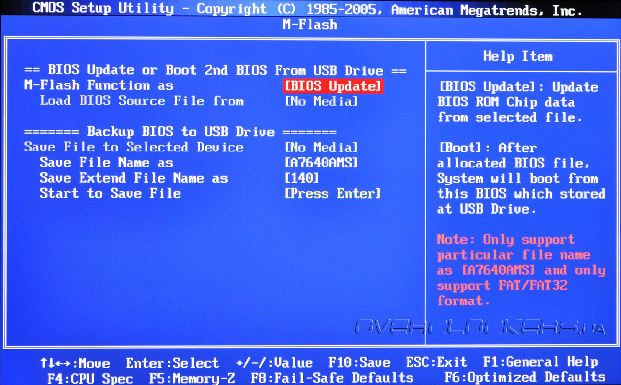 В микропрограмму BIOS большинства современных материнских плат встроены средства для резервирования и обновления прошивки. Это особенно актуально в свете полного отказа от использования FDD и повсеместного распространения накопителей USB-Flash. Так, системная плата 890FXA-GD70 не стала исключением и в ее BIOS встроена утилита для работы с прошивками M-Flash.