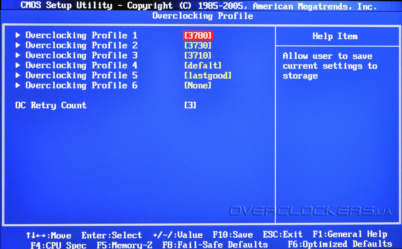 Что характерно, в случае установки нерабочих параметров BIOS, плата загружается с безопасными настройками, при этом предлагая загрузить любой из Overclocking Profile, или же зайти в BIOS для коррекции настроек.