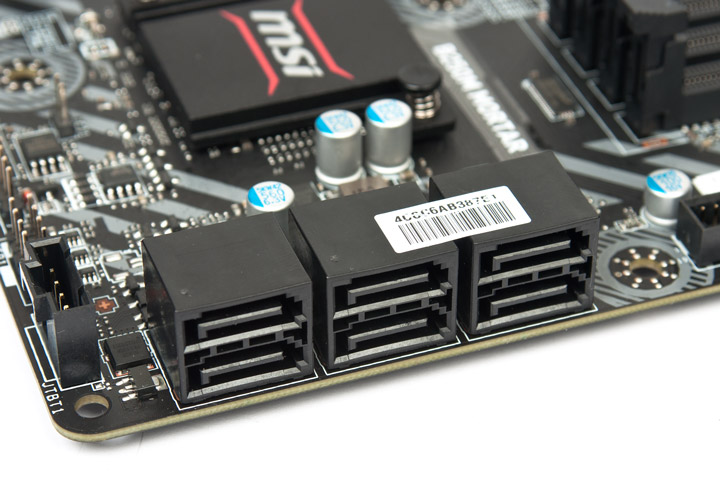 Шесть продольных гнёзд SATA предусмотрены для накопителей.
