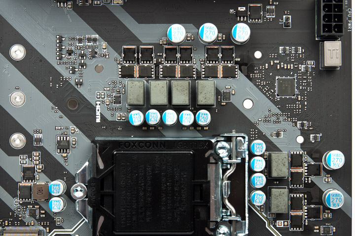 Стабилизатор питания для процессора выглядит проще, если взглянуть на устройства с бо́льшим ценником, но факт наличия радиаторов вселяет оптимизм. Их высота средняя, то есть они не создадут проблем при монтаже систем охлаждения.