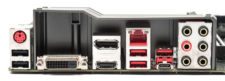 На задней панели производитель реализовал максимум возможностей, заложенный в Intel B250. Огорчить может, разве что, отсутствие оптического S/PDIF.