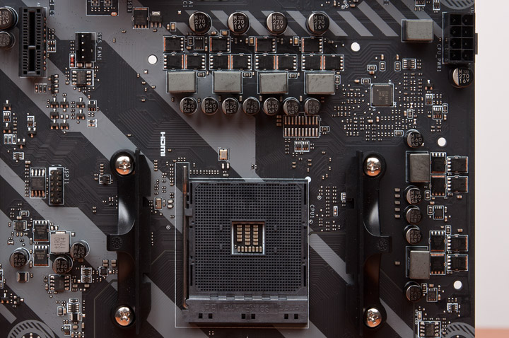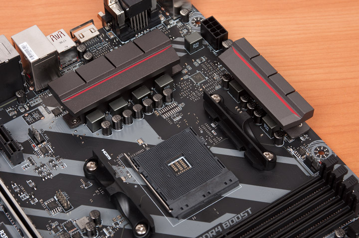 Вокруг процессорного гнезда достаточно места для проведения безболезненного монтажа системы охлаждения. На плате есть шесть четырёхконтактных колодок под нужды охладителей.