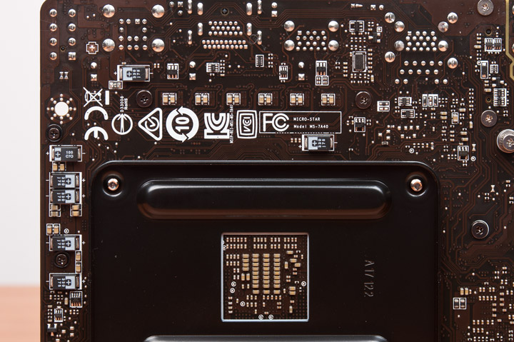 На обратной стороне заметно обилие различных компонентов, используемая усилительная пластина процессорного гнезда — металлическая.
