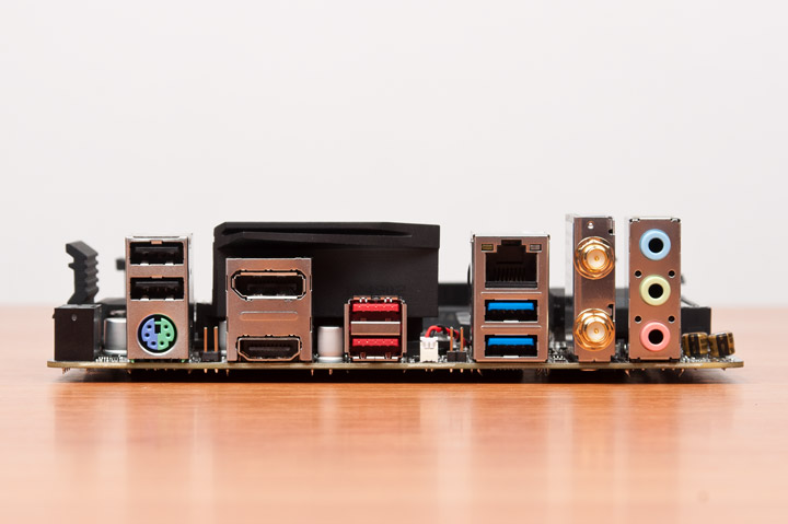 Образцовый конкурент — ASUS ROG Strix B450-I Gaming — имеет меньшее число гнёзд на задней панели, потому здесь никаких замечаний у меня нет.